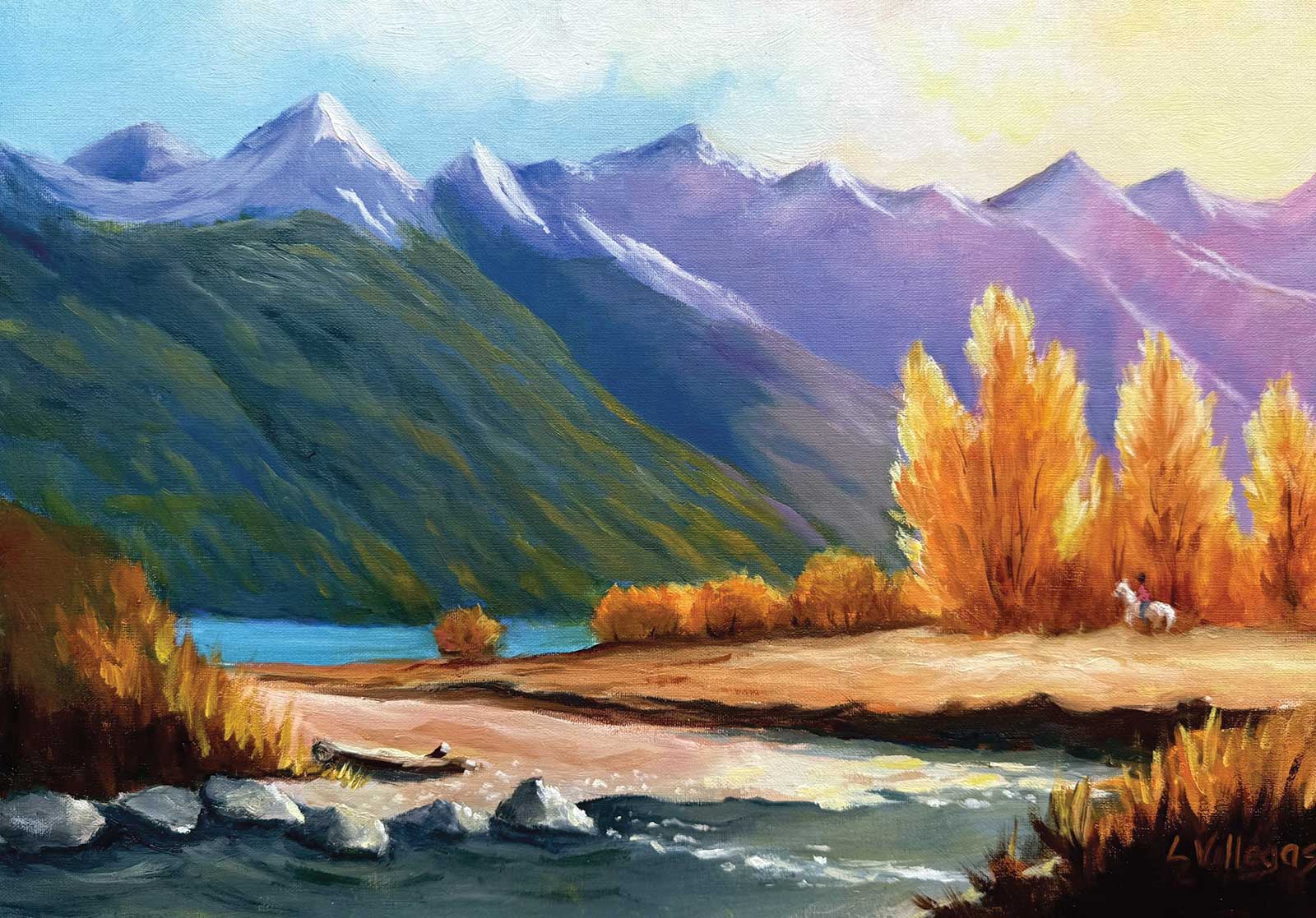 Nice one, Eric, full of your lively style once again. Very vibrant color in this one and interesting organic shapes. Love that energetic brushwork. You made a glowing light effect, too. The price you pay for that punchy color in the mountains and the strong darks back there unfiltered by atmosphere is a loss of depth in the painting. So again, it’s all about what you want to achieve in your painting and the choices you make to get there.